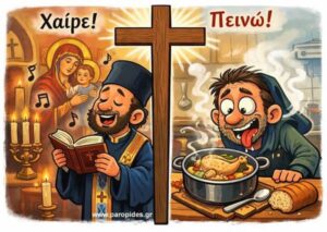 Εν κατακλείδι, τουλάχιστον στο δικό μου μυαλό, η νηστεία συγκρούεται στις συμπληγάδες της βιολογικής ανάγκης και της κοινωνικής επίδειξης. Ο πιστός (εγώ δηλαδή) υποφέρει, όχι διότι στερείται την τροφή, αλλά διότι στερείται την ελευθερία να φανεί «αμαρτωλός» ελέω πεθεράς. Περιμένει με ανυπομονησία το Σάββατο, ελπίζοντας πως ο «Κύριος» θα εκτιμήσει την υπομονή του ή τουλάχιστον την κομψότητά του κατά τους Χαιρετισμούς (όπου δεν παρέστη) και θα «φωτίσει» την πεθερά ώστε να βάλει τον μπακαλιάρο σε μορφή σούπας στο τσουκάλι συνοδευόμενη από μια άκρως εξαιρετική «Στροφιλιά λευκό οίνο» σε μπουκάλι βεβαίως βεβαίως!