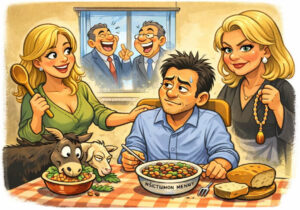Κι ενώ εγώ επούλωνα τα τραύματα της οικιακής διπλωματίας, στον ναό της δημοκρατίας, ο αβελτήρ που λέγαμε, αυτός ο παροιμιώδης «ανόητος» που συγχέει τη θεσμική θέση με την αποτρίχωση, ίσταται απέναντι από «βολευτές» και λοιπούς υπηκόους, έχοντας το θράσος να κλείνει το μάτι υπονοώντας πως «η νηστεία θέλει θυσίες».